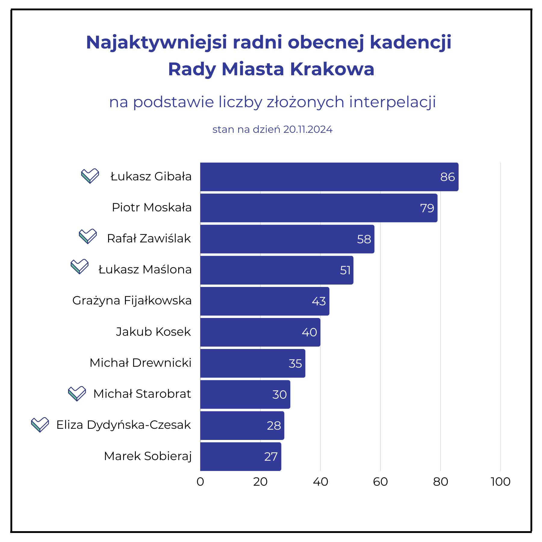 Aż pięcioro radnych naszego klubu znalazło się w pierwszej dziesiątce najbardziej aktywnych pod względem liczby złożonych interpelacji – takie statystyki napawają nas dumą!